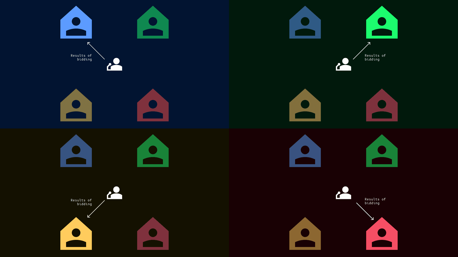 Figure 2: Auctioneers communicate with bidders about results; bidders are isolated in a room