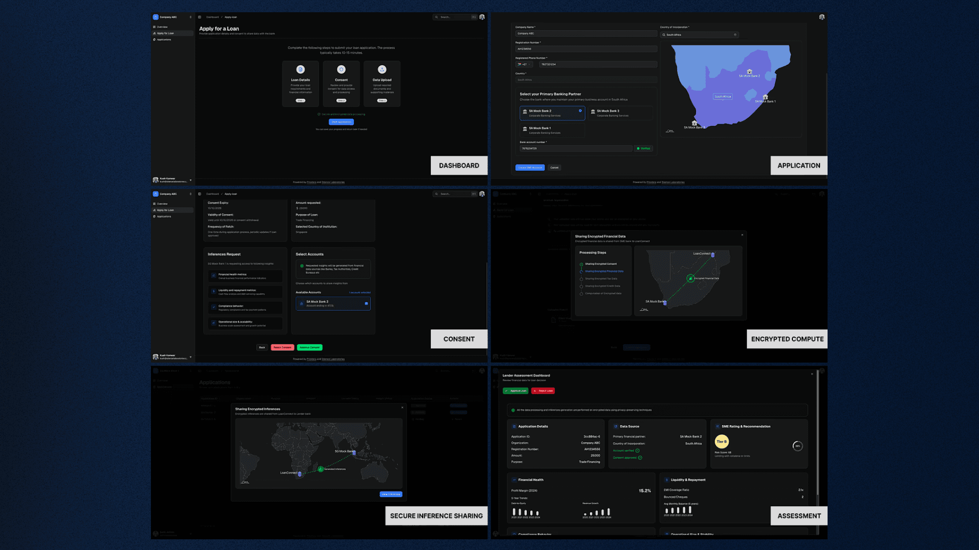 The solution streamlines and improves (time and accuracy) credit evaluation for micro small and medium enterprises (MSMEs) while ensuring the highest standards of privacy, compliance, and data security, using gurantees that raw financial data is never exposed to any party in plain text. Evaluators can only do computation on encrypted data.